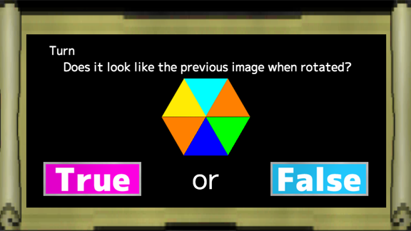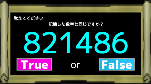 次に質問が表示されるので、正しければ「True」、間違っていれば「False」を選択します。