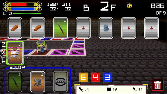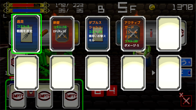 カード入手時に所持カードがいっぱいだと、カード選択メニューが開く