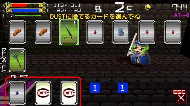 左下のDUSTエリアにカードを入れ替えて捨てるカードを選択しよう